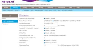 Switching から、STP、STP Configuration の項目で、Spanning Tree Admin Mode を Disable にしたら、エラーが止まった…っぽいです。